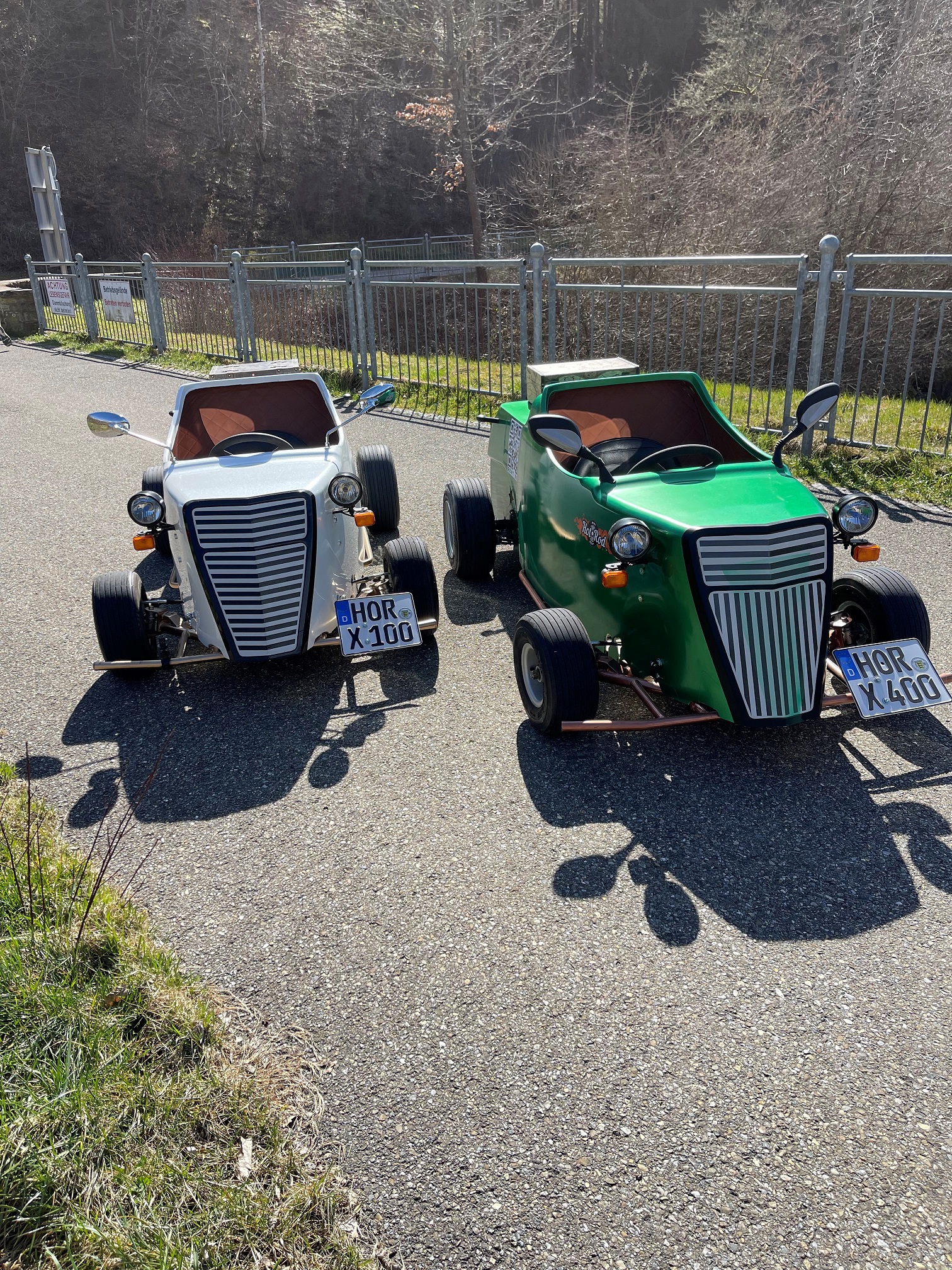 Mini Hotrods verschaffen dir ein sportliches Fahrgefühl, da du nur wenige Zentimeter über dem Asphalt cruist, d.h. du spürst die Straße mit all seinem Charakter direkt unter dir. Unsere Mini Hotrods haben 13,6PS und können mit bis zu 88km/h die kurvenreichen Routen des Black Forest durchqueren – diese Fahrt wirst du sicherlich so schnell nicht vergessen!